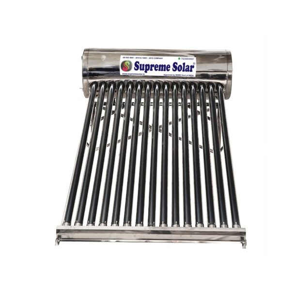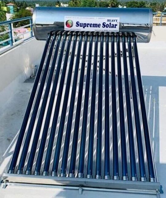 Supreme Solar 200 Ltr Full Steel Budget-friendly solar water heater with 200 ltr capacity is the most used and sold product in India. This product is well suited for a family of 4 to 5 and serves up to 3 bathrooms.