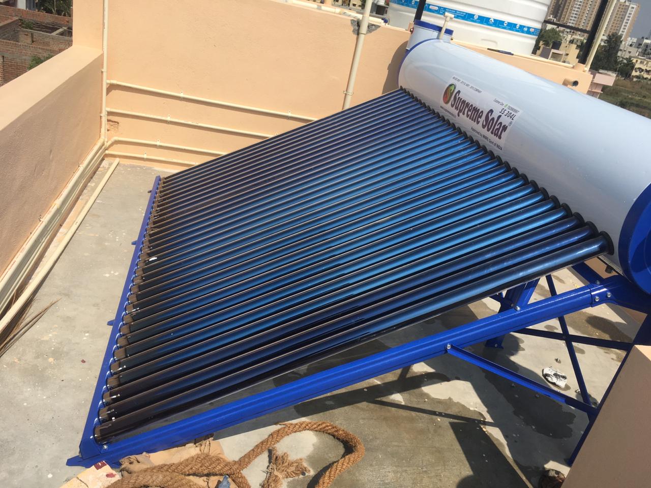 Heat pump solar water heater give you 24hours hot water regardless of weather conditions. here is a video which we have installed in bangalore.